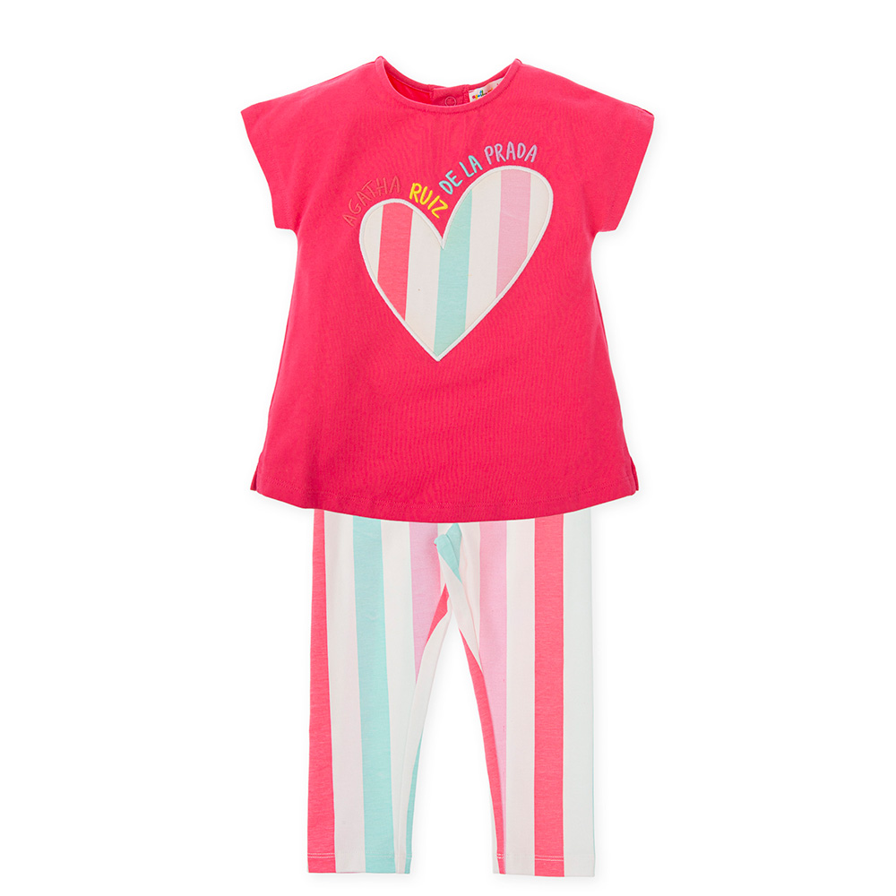 Agatha Ruiz De La Prada Pink Heart Top & Striped Leggings Set