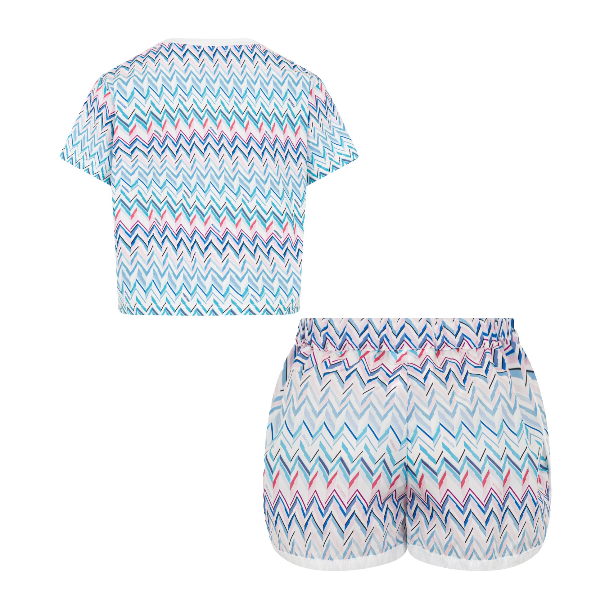 Missoni Girls White Top & Blue Printed Shorts Set