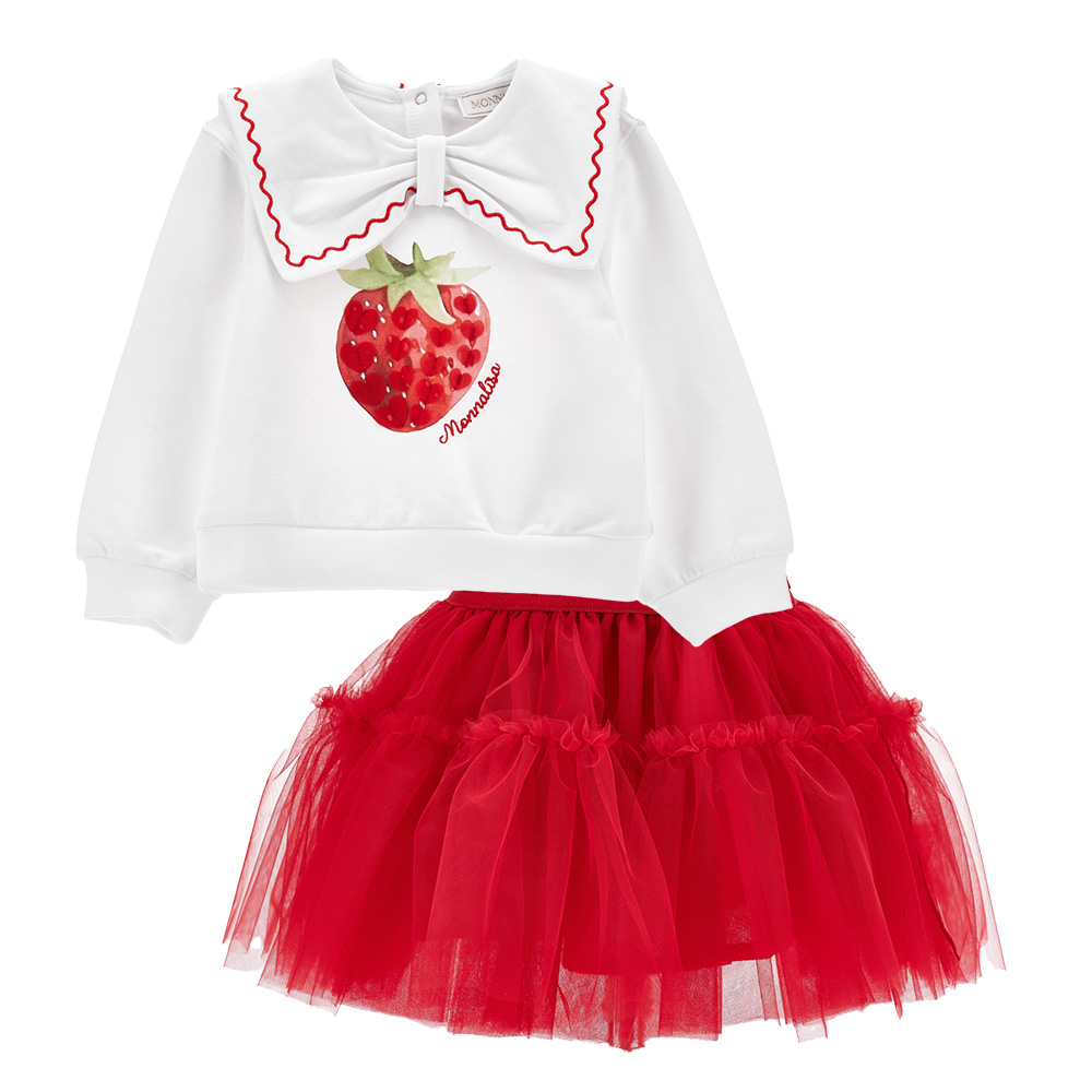 Monnalisa Strawberry Jumper & Red Tulle Skirt Set