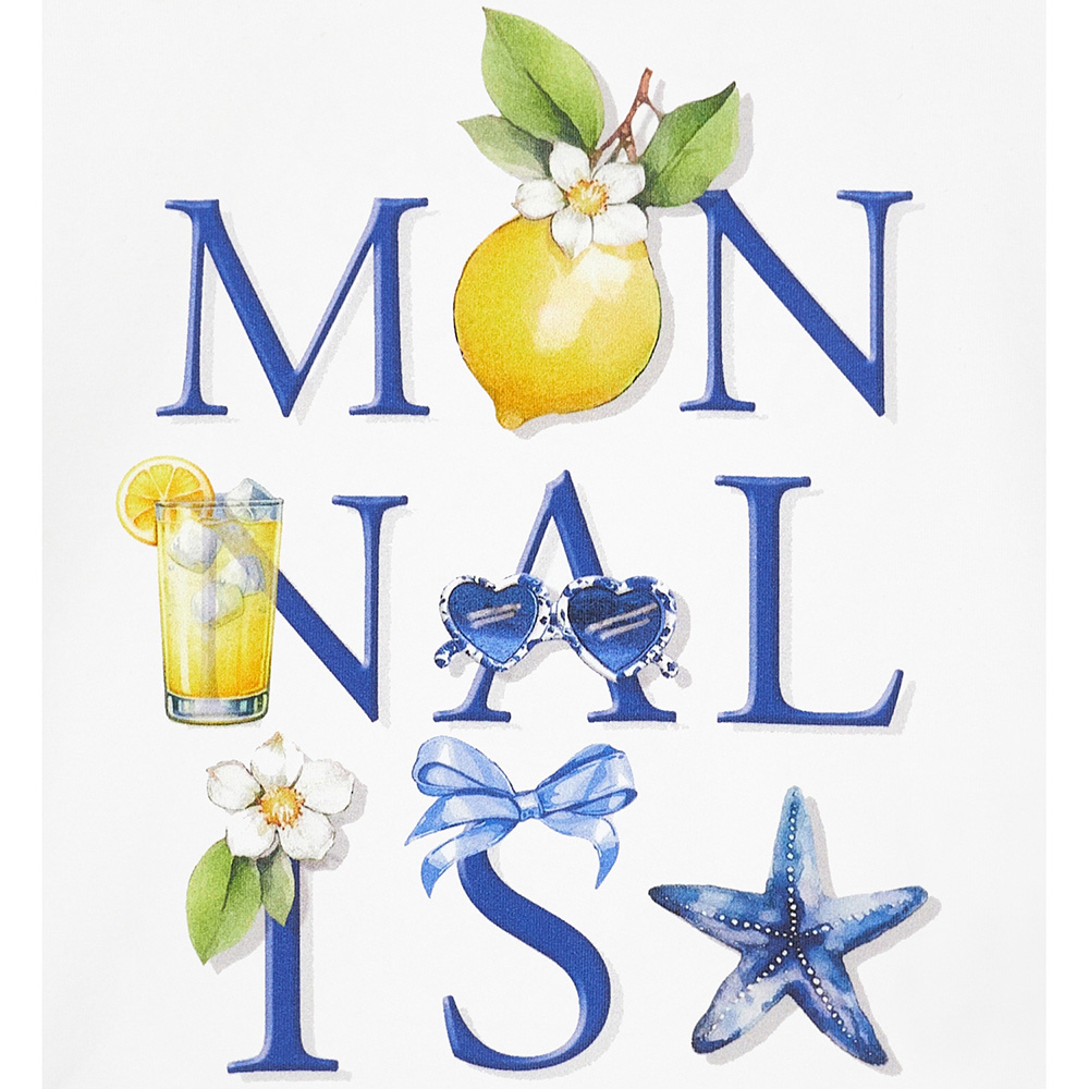 Monnalisa White T-Shirt & Blue Printed Short Set